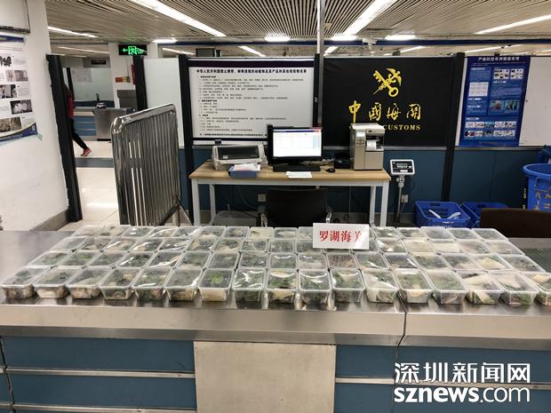 海關(guān)關(guān)員介紹:“我們打開袋子,立刻一股濃烈的腥味撲鼻而來,接著看見了許多個裝有綠色物品的透明塑料盒子,仔細(xì)一看,原來裝在盒子里面的竟是一只只活體蛙類,密密麻麻地分布在盒子各個位置,還在不停地爬動?!苯?jīng)清點,一名旅客攜帶32盒,另一名旅客攜帶35盒,每盒10只,共計670只蛙。