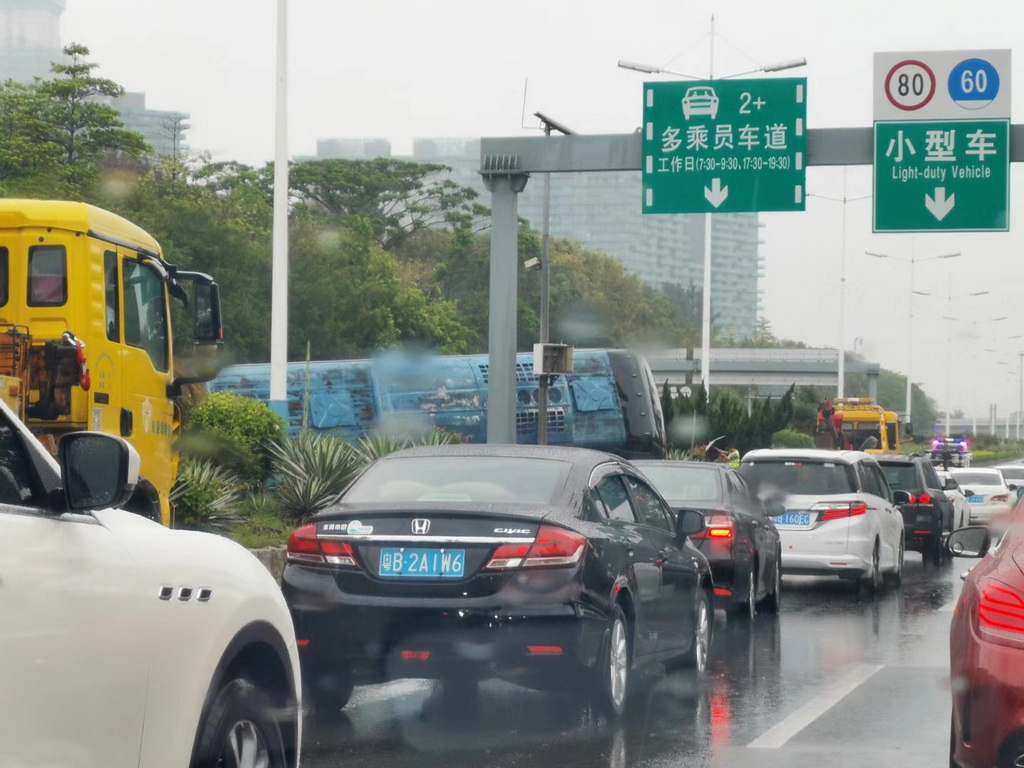 深圳交警通過微博發(fā)布消息,提醒沿途司機(jī)注意避讓,小心行駛。