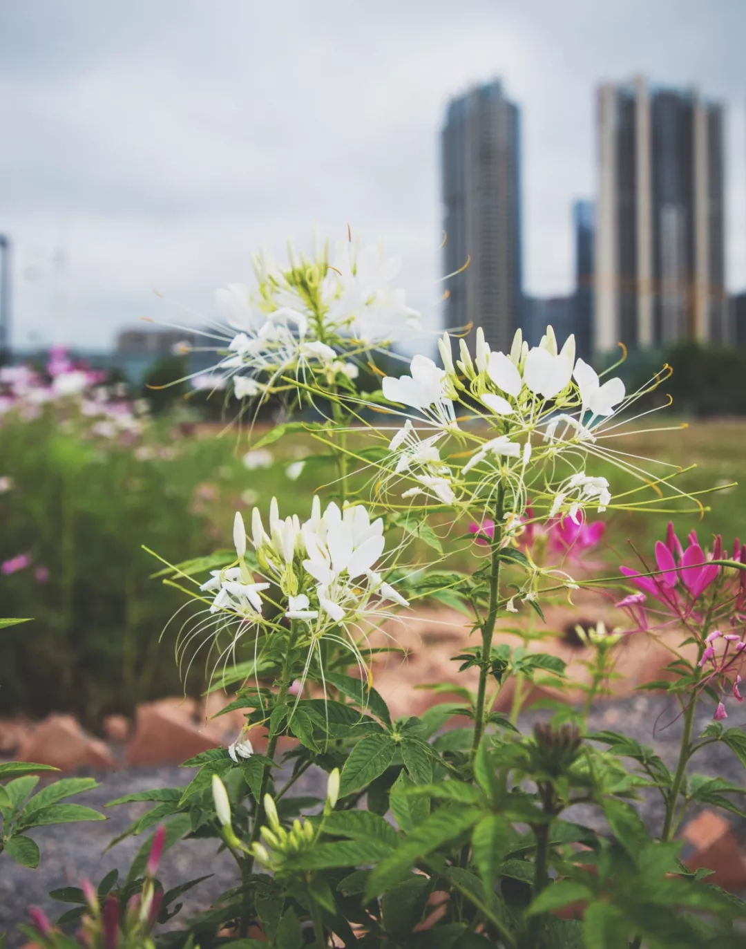 乍一看是不是有點(diǎn)像彼岸花?不過(guò)它倆卻算不上什么親戚。醉蝶花盛開時(shí),總狀花序形成一個(gè)豐滿的花球,朵朵小花猶如翩翩起舞的蝴蝶,靈動(dòng)迷人。