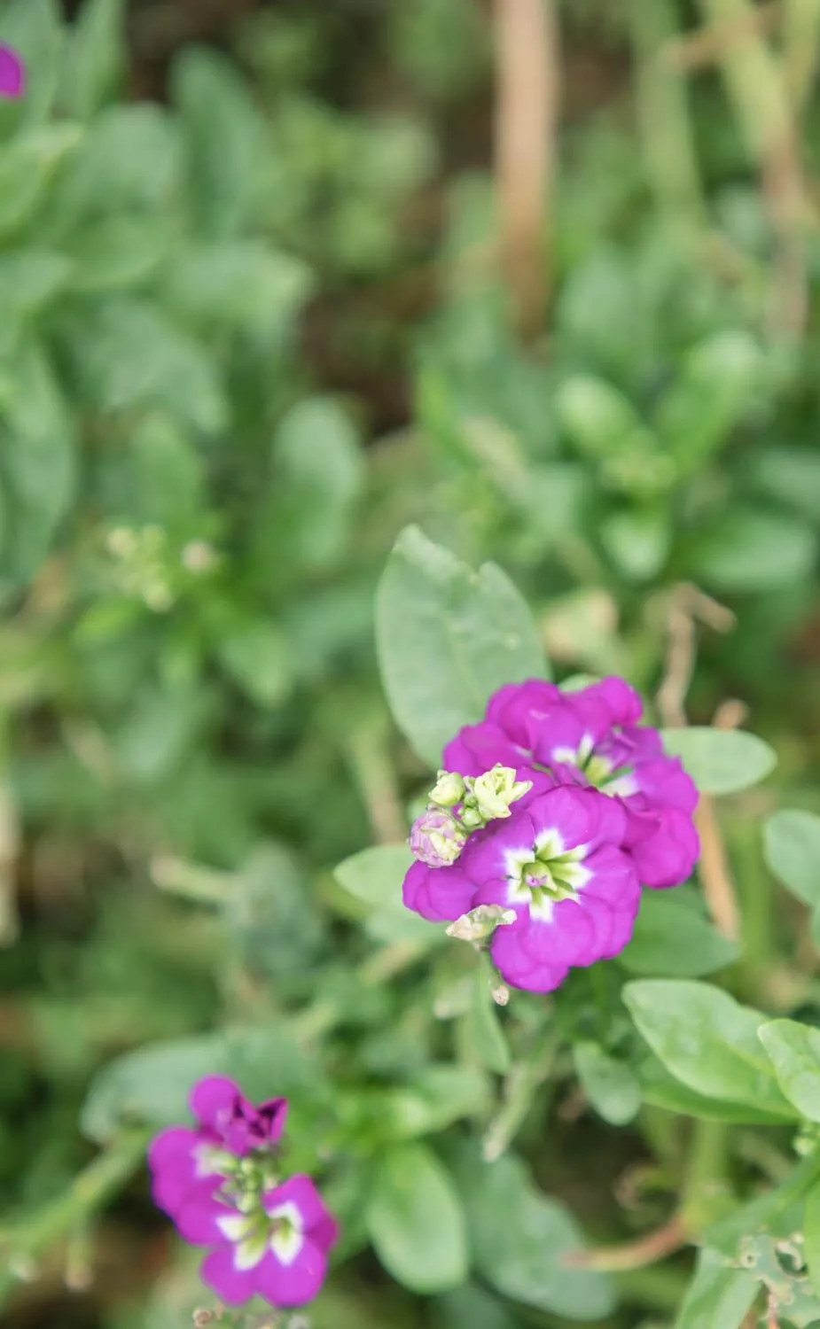 紫羅蘭芳香怡人,因此它還有個(gè)別名叫“草桂花”。一株紫羅蘭上會(huì)長出好幾朵花,花團(tuán)簇?fù)淼臉幼?,分外好看?/p>