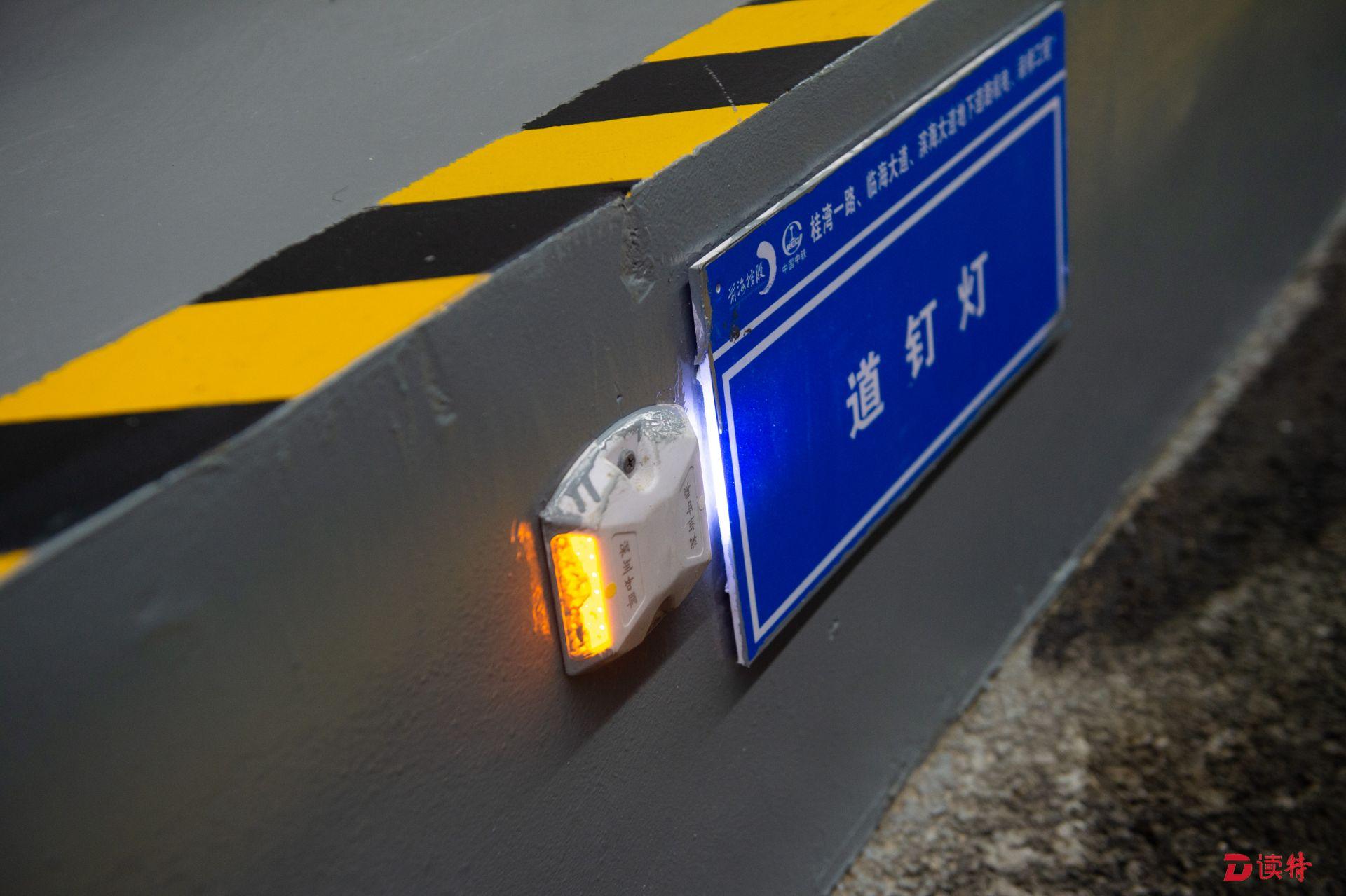 前海地下道路試驗段安裝有道釘燈,提升行車安全。