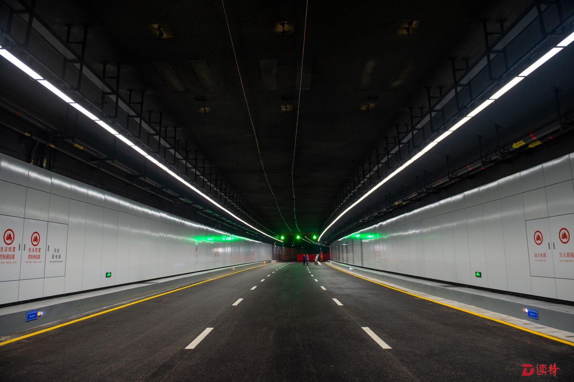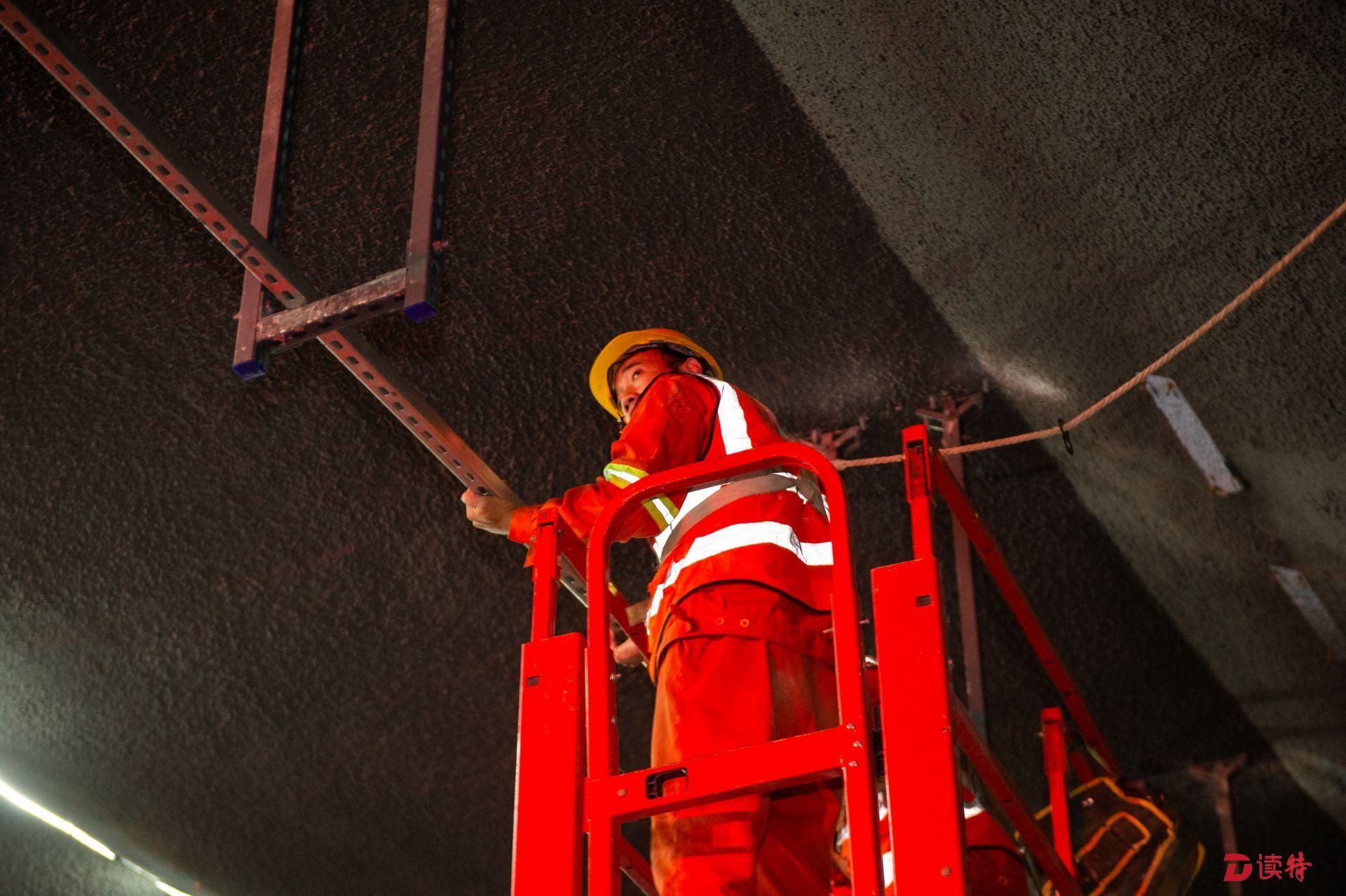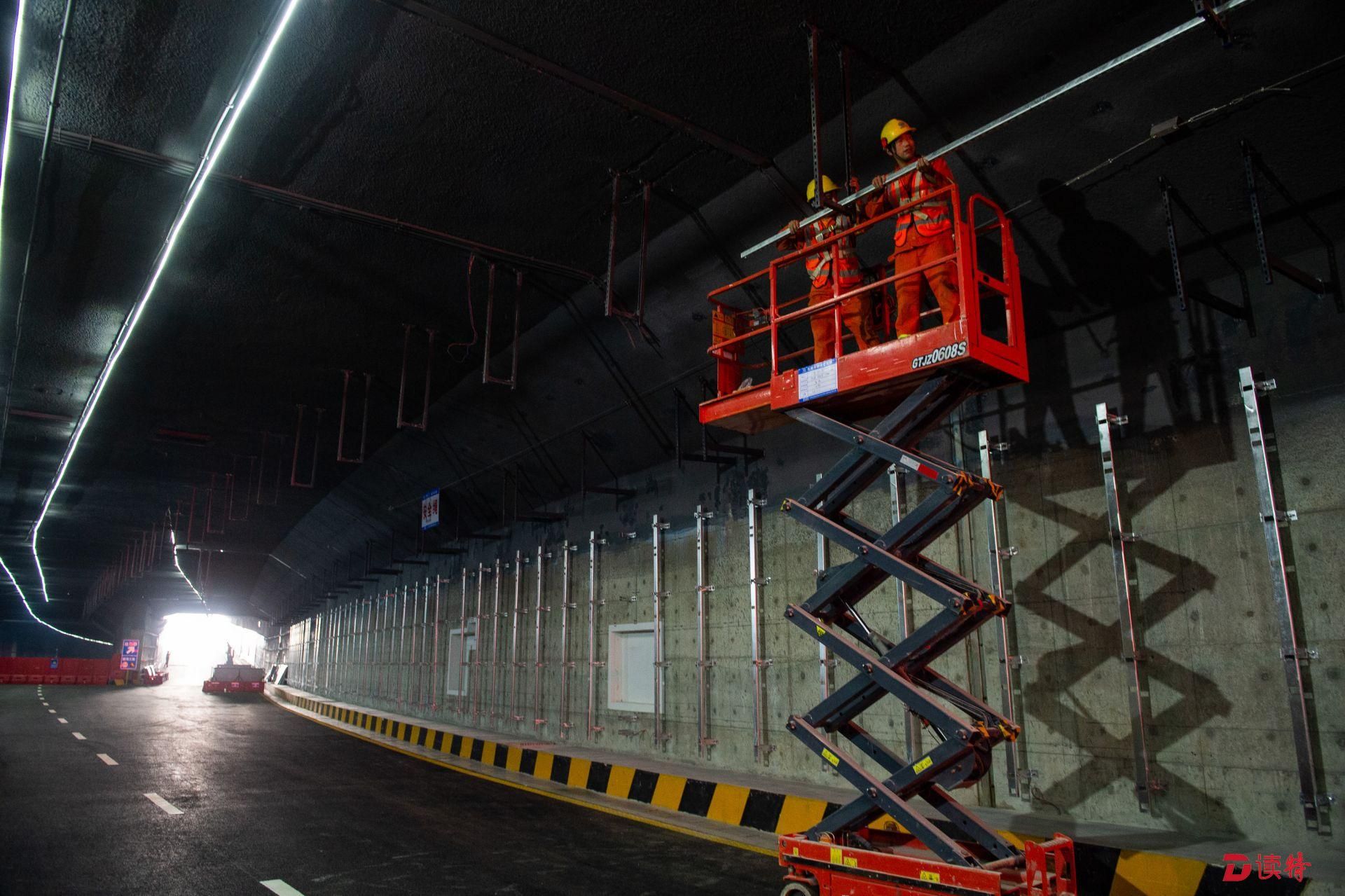 4月16日,讀特記者從臨海大道與前灣三路路口附近乘車進入地下道路,看到前海地下道路已經(jīng)實現(xiàn)主體隧道貫通,項目進入裝飾裝修和機電設(shè)備安裝階段,工人正在隧道內(nèi)安裝照明、通風(fēng)、排水、消防等設(shè)施。在項目工程樣版段,記者看到隧道兩側(cè)的已經(jīng)裝好搪瓷鋼板,頂部的連續(xù)燈帶和交通指示燈也已經(jīng)安裝到位,地面上也已經(jīng)劃好了分道線。中鐵四局機電公司相關(guān)負責(zé)人表示,目前前海地下道路機電裝修工程樣板已經(jīng)順利通過驗收,為接下來大面積機電裝修施工提供了標(biāo)準(zhǔn)指引。該負責(zé)人表示:“全線共安排了一百多名工人,分區(qū)域進行設(shè)備安裝和裝飾裝修,將確保項目年底竣工、2020年初通車,為前海發(fā)展提供更好交通保障?!?/p>