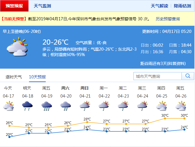 深圳新聞網(wǎng)2019年4月17日訊 連續(xù)6天的持續(xù)性降雨結束,今日深圳多云可見陽光,但"好景不長",記者從市氣象臺獲悉,18~20日又將迎來一輪暴雨局部大暴雨的降雨過程,21日降雨才會明顯減弱。