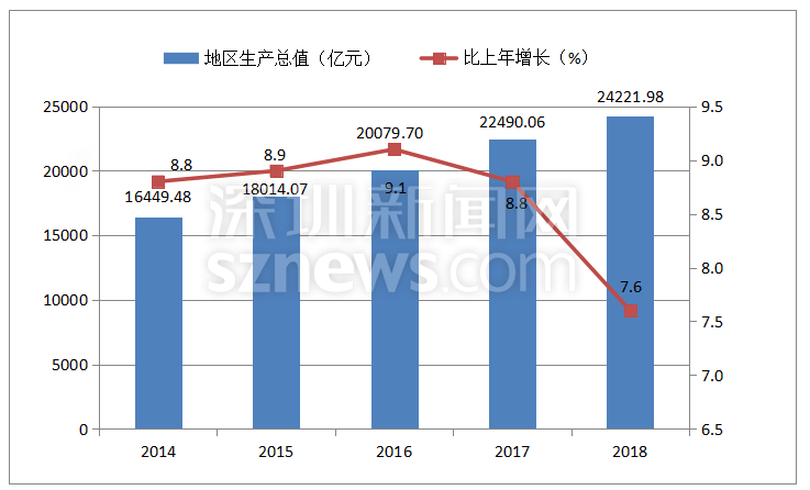 深圳新聞網(wǎng)2019年4月19日訊(記者 劉夢(mèng)婷 通訊員 胡雪濤)4月19日,記者從深圳市統(tǒng)計(jì)局獲悉,深圳市2018國(guó)民經(jīng)濟(jì)與社會(huì)發(fā)展統(tǒng)計(jì)公報(bào)出爐:全市實(shí)現(xiàn)地區(qū)生產(chǎn)總值24221.98億元,比上年增長(zhǎng)7.6%,常住人口達(dá)1302.66萬人。人均可支配收入57543.60元,居民人均消費(fèi)支出40535.02元。總體來看,2018年深圳經(jīng)濟(jì)運(yùn)行穩(wěn)健,主要經(jīng)濟(jì)指標(biāo)表現(xiàn)良好,高質(zhì)量發(fā)展扎實(shí)推進(jìn)。