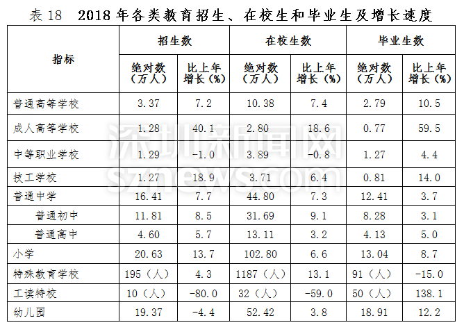 深圳新聞網(wǎng)2019年4月19日訊(記者 劉夢婷 通訊員 胡雪濤)4月19日,記者從深圳市統(tǒng)計局獲悉,深圳市2018國民經(jīng)濟(jì)與社會發(fā)展統(tǒng)計公報出爐:全市實現(xiàn)地區(qū)生產(chǎn)總值24221.98億元,比上年增長7.6%,常住人口達(dá)1302.66萬人。人均可支配收入57543.60元,居民人均消費支出40535.02元。總體來看,2018年深圳經(jīng)濟(jì)運行穩(wěn)健,主要經(jīng)濟(jì)指標(biāo)表現(xiàn)良好,高質(zhì)量發(fā)展扎實推進(jìn)。