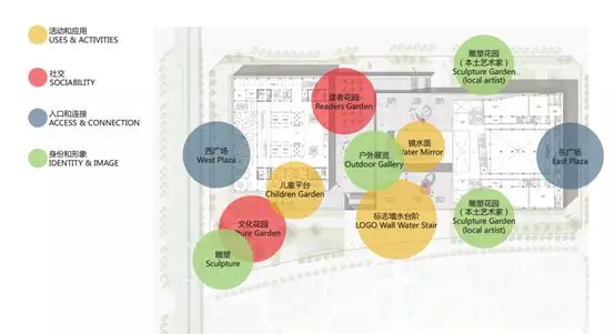 同時,設(shè)計(jì)定義了不同的功能性景觀分區(qū),一靜一動、或?qū)庫o或喧囂、光影交融、密集與開放、集聚與獨(dú)處的可變空間,為主體建筑附加了多樣化的室外活動場所,例如專門為圖書館訪客設(shè)置的讀者花園、兒童平臺、文化花園,以及在美術(shù)館區(qū)域設(shè)置的雕塑花園、戶外展覽區(qū)及鏡水面廣場。滿足不同的活動場景下市民對空間的需求,讓城市空間真正地為城市及市民所用。