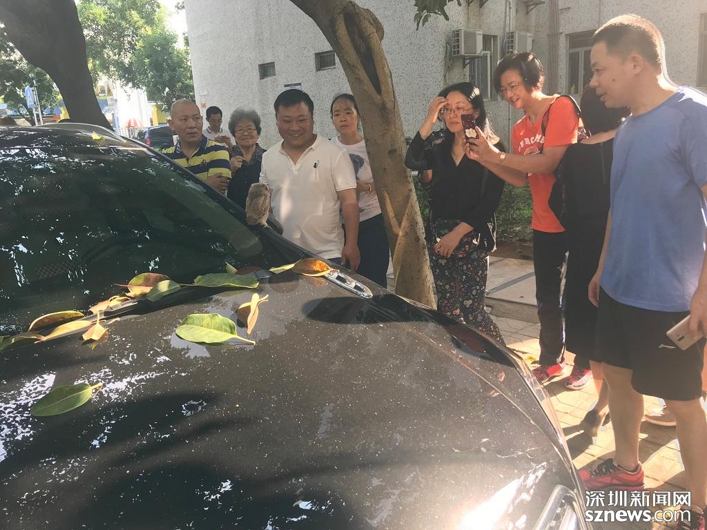 深圳新聞網(wǎng)2019年4月25日訊(記者 鄭曉鵬)今日早上8點(diǎn)多,一只小貓頭鷹停留在蓮花北村小區(qū)一輛小汽車上,路過的市民紛紛圍觀拍照。