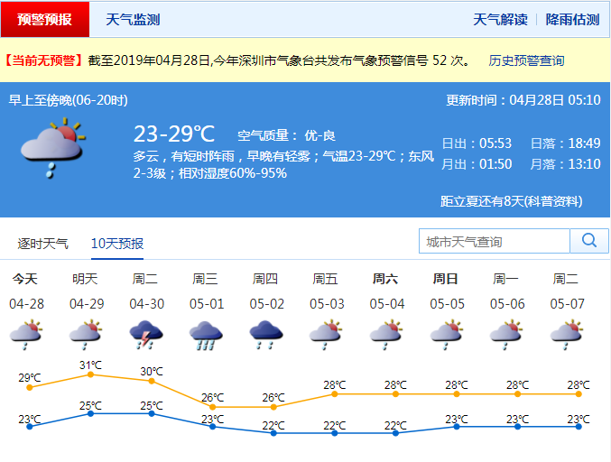 市氣象臺預(yù)測,今明兩天降雨減弱,29日多云有短時陣雨,易出現(xiàn)在午后。30日-5月1日又有一次強降雨過程,雨量可達大雨到暴雨,伴有雷暴、大風和短時強降水。