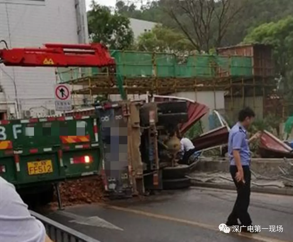 羅湖一渣土車道路側(cè)翻,車頭已嚴(yán)重變 ...