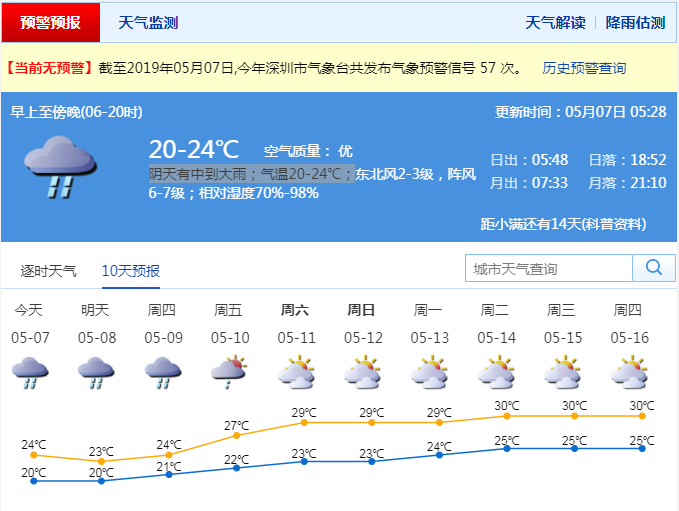 深圳新聞網(wǎng)5月7日訊(記者 陳婕)5月6日是“立夏”節(jié)氣,但受陰雨天氣影響,全市氣溫在22℃徘徊,最高氣溫甚至比去年“冬至”還低。記者從市氣象局了解到,預(yù)計(jì)7-9日,深圳有明顯降水,沿海高地和海區(qū)最大陣風(fēng)7級(jí)左右。