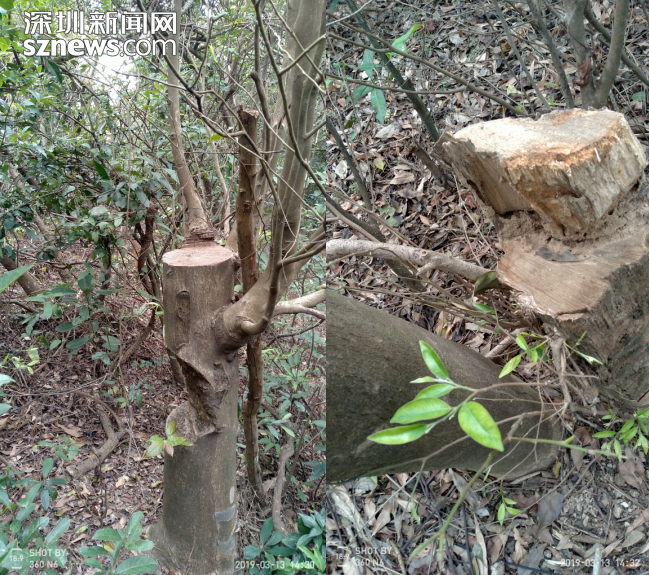 該網友提及的應人石村位于深圳石巖,從地圖上看,其“后山”與羊臺山森林公園連為一體,是附近居民閑暇時度假踏青的重要選擇。據了解,網友“詩奴L”于今年3月中旬上山游玩,游玩途中發(fā)現(xiàn)原本茂盛的野生沉香樹大多遭人砍伐?!安环ǚ肿痈F盡一切手段,用鉆、削、劈、鋸等來對沉香樹進行摧殘,這簡直是屠殺式的洗劫!”該網友表示,看到這么多野生沉香樹被殘暴砍伐,真地讓人很氣憤。