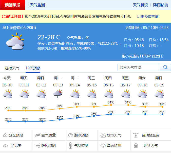深圳新聞網(wǎng)2019年5月10日訊 雨終于停了!深圳今天最高氣溫28℃,多云,局部有短時(shí)陣雨,“夏天”怕是要回來了!