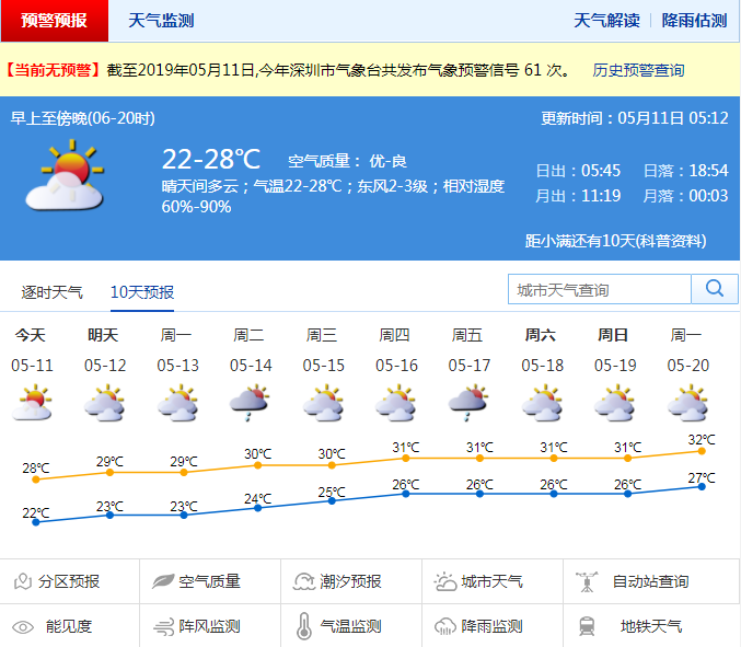 深圳新聞網(wǎng)2019年5月11日訊 昨日,記者從深圳市氣象臺獲悉,受連日降雨影響,5月以來深圳持續(xù)陰涼寡照。據(jù)統(tǒng)計,5月1日-9日深圳平均氣溫21.6℃,累計日照僅2.4小時,分別刷新歷史同期最低和最少記錄。