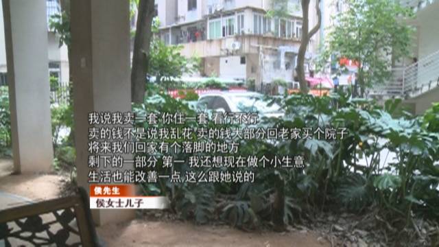 侯女士說,自己就這么一個兒子,兒子從4個月大就是由自己一手帶大,自己走了以后,房子都是他的,何苦這么折騰她。所以自己就不同意兒子賣房,這也是兒子這一個多月做出過激舉動的原因。