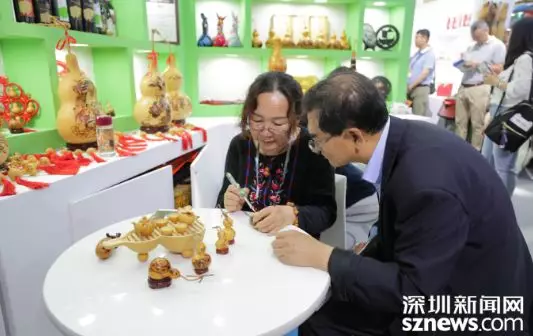 葫蘆刻繪展區(qū),傳承人在介紹葫蘆畫的繪制。深圳新聞網(wǎng)記者 潘潤(rùn)華 攝