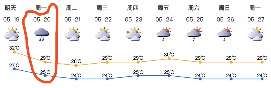 19日多云,局地有短時(shí)陣雨或雷雨,天氣悶熱;20日有一次明顯降雨過程,局部地區(qū)有暴雨,伴有雷暴大風(fēng)。21日起轉(zhuǎn)多云,氣溫略降↓,悶熱天氣緩解。