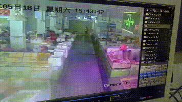 ▲視頻監(jiān)控顯示,女檔主一邊用手臂擋,一邊躲閃,無(wú)奈男子繼續(xù)發(fā)難,短短幾秒間,女檔主又被砍了數(shù)刀。