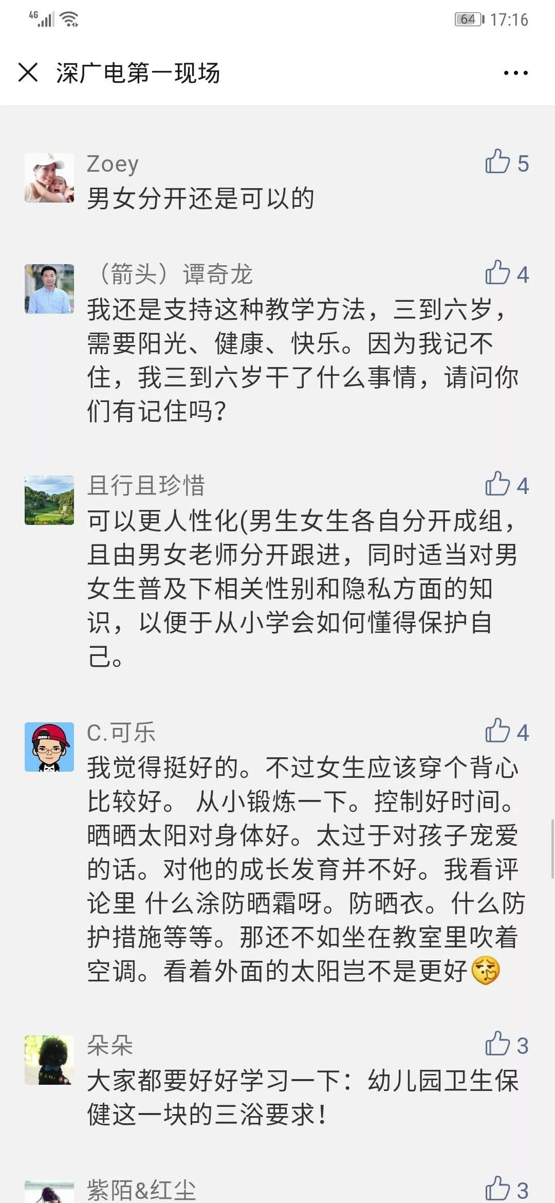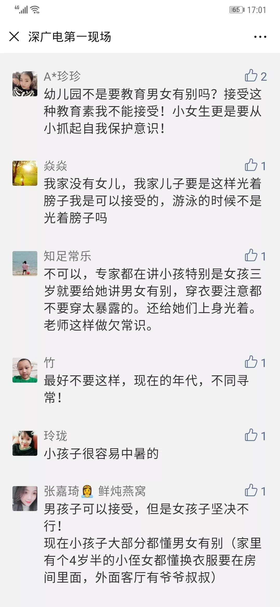 不過,也有家長認為,日光浴有益于孩子的成長,并且孩子年齡尚小,正處于純真無邪的時候,不應該過早把成年人復雜的思想灌輸給孩子。