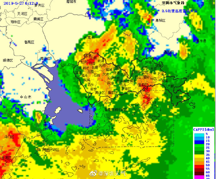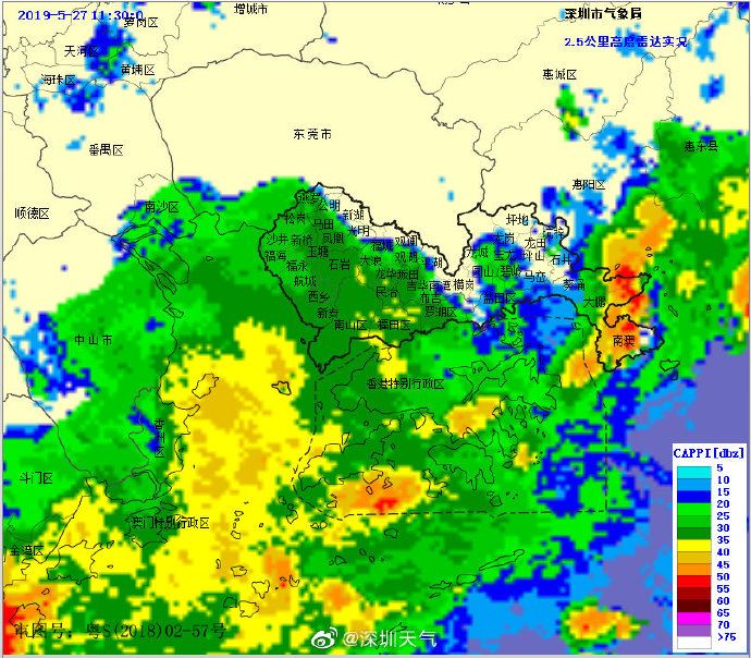 強降雨將趨于結(jié)束,深圳市氣象臺于2019年05月27日12時30分在全市取消暴雨黃色預(yù)警,預(yù)計今天白天仍有雷陣雨,部分時間雨勢較大,市民仍需注意遠離河道和危險邊坡等