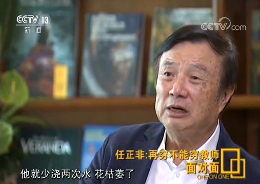 任正非:一樣,我們可以講,在日本一個小學教師,娶一個電影明星做太太,但以前是有名字的,現(xiàn)在我不講這個名字了,很正常,覺得很榮耀,不覺得不榮耀。當然我們國家七十年來有巨大進步,這三十年也有巨大改善,對吧,教師的生活也有大的進步,但是我們要看到他們是我們祖國的未來,他們是國家未來。他們擔負著花朵,給花朵澆水的人。我們都不給花朵澆水的人一種事業(yè)心一種使命感的話,他就少澆兩次水,花枯萎了,我們不就是一個喬布斯少掉了嗎?