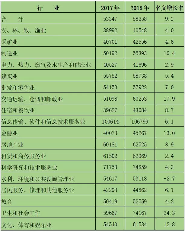 (2018年城鎮(zhèn)私營單位分行業(yè)就業(yè)人員年平均工資。單位:元,%)