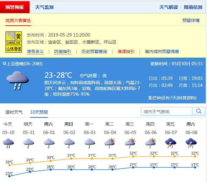 深圳新聞網(wǎng)5月30日訊 從上周開始,天氣預(yù)報(bào)就不斷提示:小雨、雷陣雨、暴雨。掐指一算,“龍舟水”又到了。深圳市氣象臺預(yù)計(jì),31日-6月3日,多云間陰天,有中到大雨。深圳人,你們最近可能真的需要一艘船!