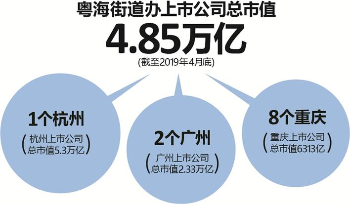 有媒體統(tǒng)計(jì)顯示,在粵海街道這個(gè)開(kāi)車10分鐘就能逛一圈的“彈丸之地”,有112家公司屬于粵海街道辦,包括4月底市值超過(guò)3萬(wàn)億元人民幣的騰訊控股,中國(guó)恒大、華潤(rùn)置地、騰訊音樂(lè)、邁瑞醫(yī)療、中興通訊等5家千億市值公司,以及大族激光、深信服、金蝶國(guó)際等近20家百億市值公司。截至到今年4月底,A股、H股和美股上市的深圳市粵海街道辦上市公司有多達(dá)112家,總市值達(dá)到了4.85萬(wàn)億元,而杭州市全市的上市公司總市值為5.3萬(wàn)億元。