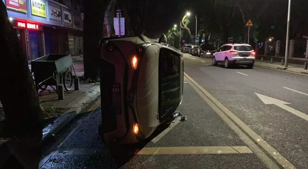 這車開著開著,怎么就突然90°側躺在路邊了呢?是酒后駕駛嗎?現(xiàn)場民警對駕駛員李某進行酒精檢測,結果顯示無酒精。