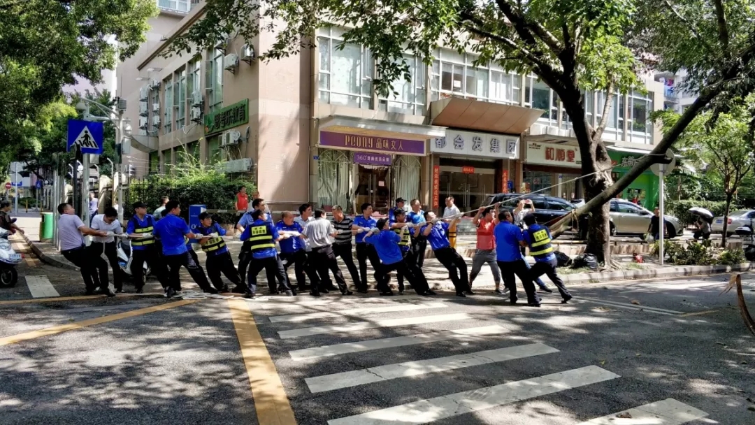 △2018年9月19日,“山竹”臺風后,通心嶺派出所在百花片區(qū)做災后清理工作