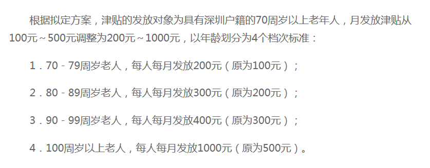 但我曉得深圳高齡老人津貼要漲啦