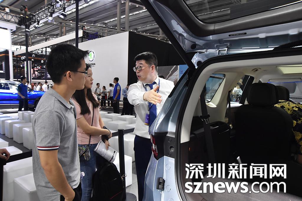 購(gòu)車顧問向參觀的市民介紹車輛性能