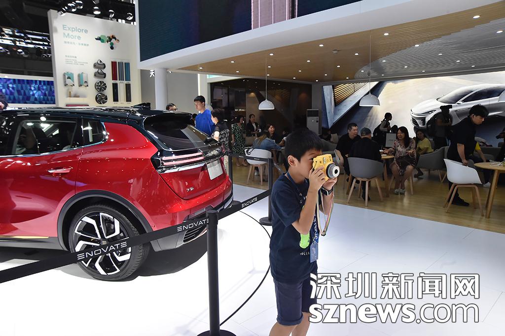 車展現(xiàn)場,一位小攝影師拿起相機(jī)拍攝