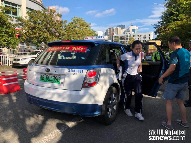 【寶安中學(xué)】一位考生從愛(ài)心送考車上下來(lái),與父親告別后奔赴考場(chǎng)