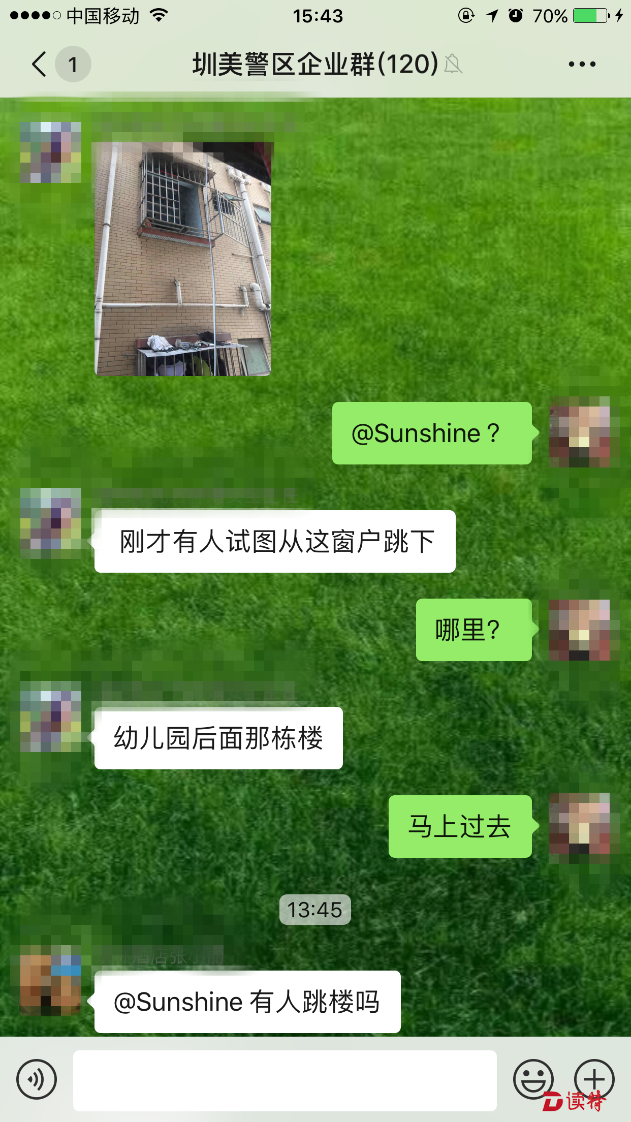 就在圳美警區(qū)隊(duì)員現(xiàn)場(chǎng)處置的過程中,微信群中的成員紛紛詢問事件情況。在了解到圳美警務(wù)室的隊(duì)員不到1分鐘就趕到現(xiàn)場(chǎng)后,大家對(duì)警區(qū)工作人員接連點(diǎn)贊。(讀特記者 王茂程 通訊員 胡澤瑜 溫小龍)