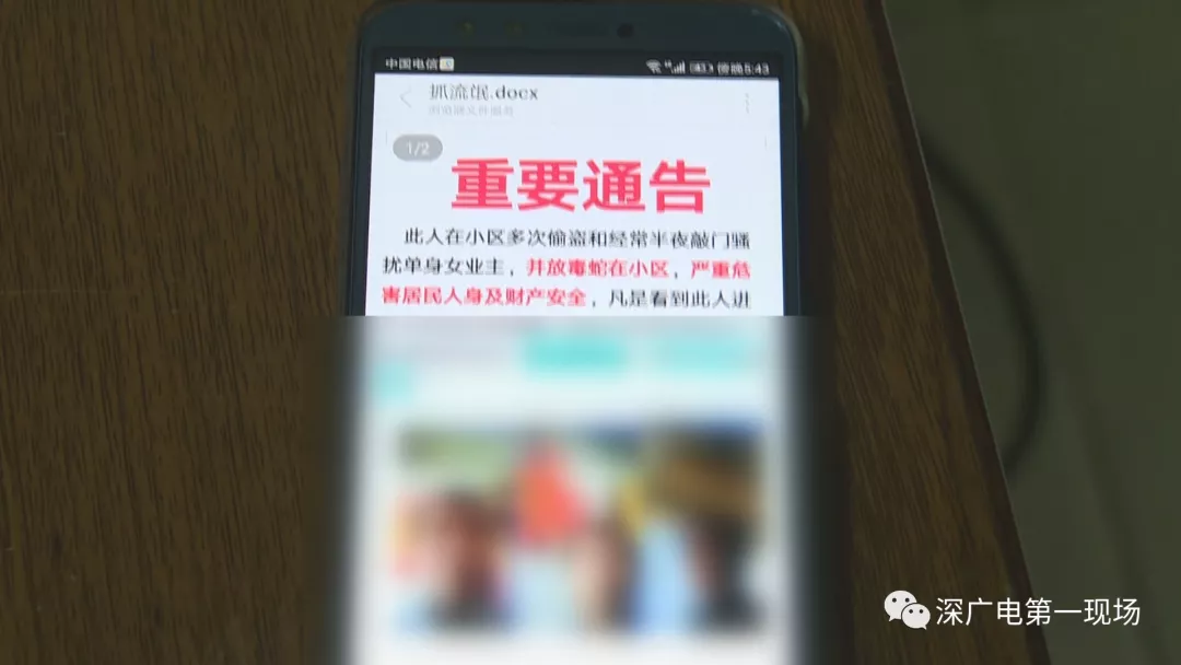 ▲小區(qū)通報(bào)全體業(yè)主的告示,提醒住戶要堤防鬧事男子。