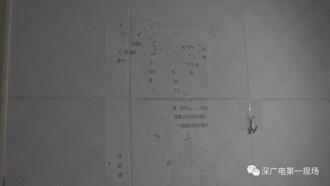 ▲賈女士家門(mén)墻上,男子張貼侮辱性文字告示,已被賈女士清除