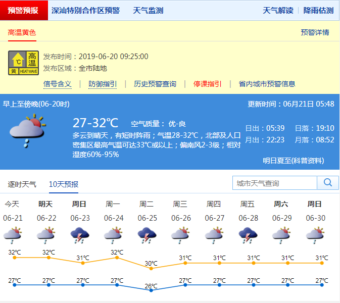 深圳昨發(fā)布高溫黃色預(yù)警 今日天氣依舊炎熱 中考期間有雷陣雨