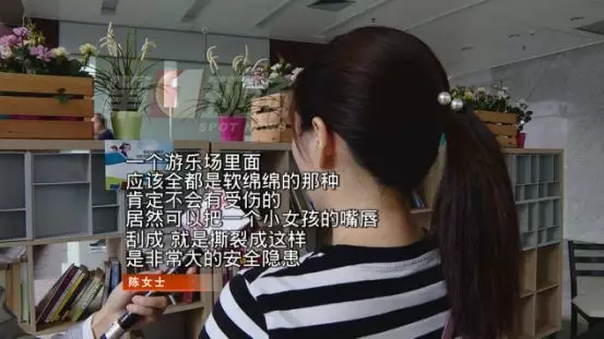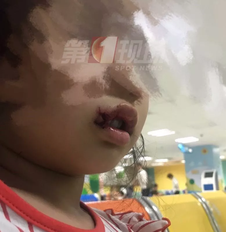 陳女士告訴記者,6月14號那天,女兒在泡泡池里玩的正開心,沒想到在一個臺階處,孩子轉(zhuǎn)身去抱一個抱枕時,不小心摔了一下,導(dǎo)致嘴巴被割傷。