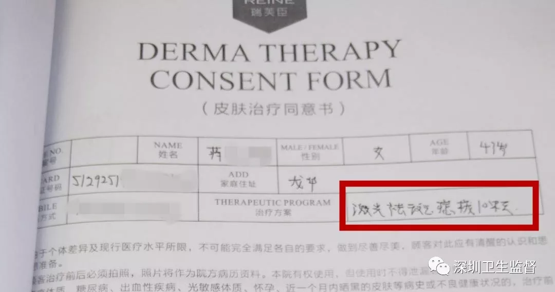 皮膚治療同意書和治療記錄表