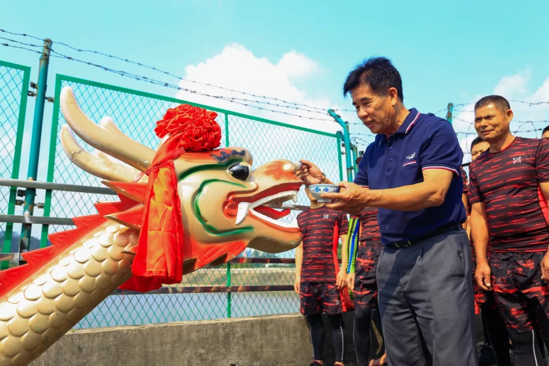 每年龍舟賽在下水訓(xùn)練前,村中會定好日子,然后選一位年紀(jì)大且威望高的老人作代表,在祠堂為龍船點(diǎn)睛。