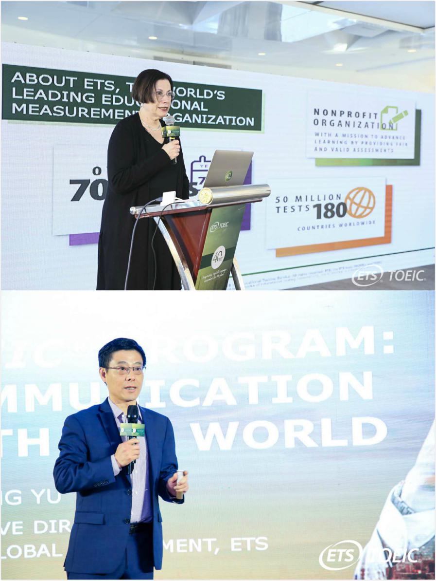美國ETS國際部總經理Shelly Punchatz、托業(yè)產品管理總監(jiān)余峰博士,代表ETS分別出席了上海站、深圳站慶典活動。在慶典活動中,兩位ETS總部高層回顧了TOEIC40年的卓越發(fā)展成就,以及助力全球多個國家及地區(qū)企業(yè)實現國際化發(fā)展的成功案例。他們表示,語言是架起經濟和文化的橋梁,托業(yè)已成為全球應用最廣泛、最具有含金量的商務和職業(yè)英語測評標準。在國際化的商務溝通中,TOEIC越來越成為企業(yè)不可或缺的合作伙伴。