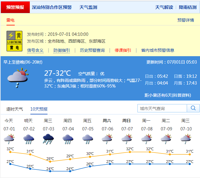 深圳新聞網(wǎng)2019年7月1日訊 深圳市氣象臺于2019年07月01日07時45分在全市取消高溫黃色預,延續(xù)前幾天的高溫天氣暫時緩解。