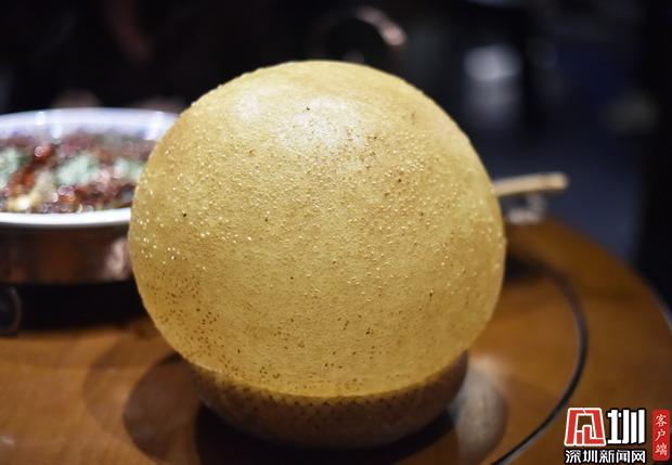 點(diǎn)菜時(shí)看到光頭司令大麻圓時(shí),小婕非常好奇,麻圓是有多大?果然,是麻圓plus版,面上沾滿(mǎn)白芝麻,戴上餐廳配備的塑料手套,邊撕邊吃,嚼起來(lái)甜糯香口,吃得停不下來(lái)!但一定要趁熱吃!熱的時(shí)候酥香, 冷吃很膩,也有些塞牙縫。分量較大,兩個(gè)人是吃不完的。