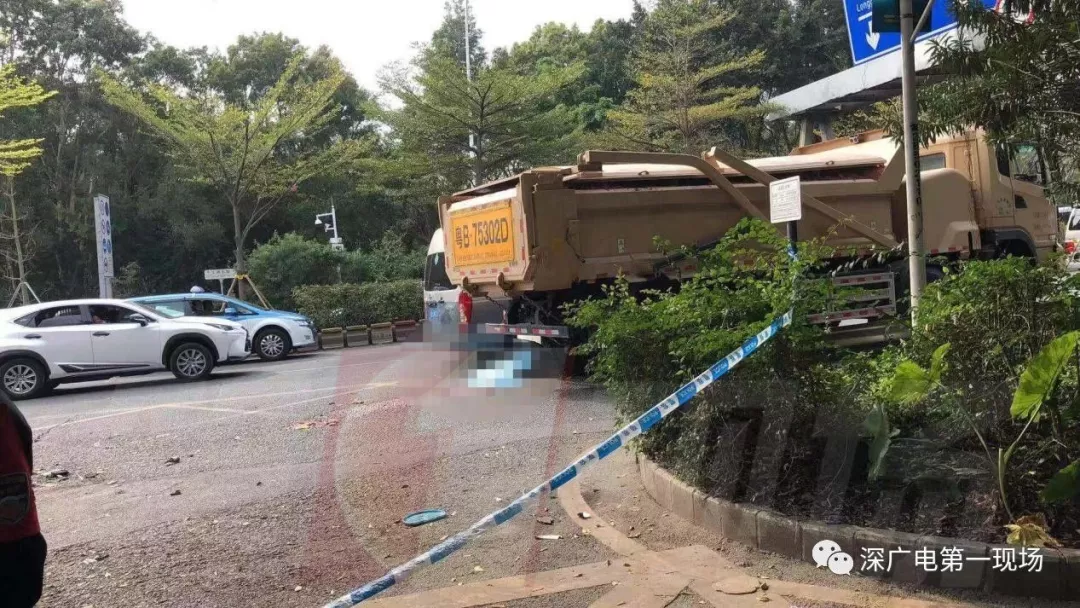 一輛滿(mǎn)載泥土的泥頭車(chē)與兩輪電動(dòng)車(chē)相撞