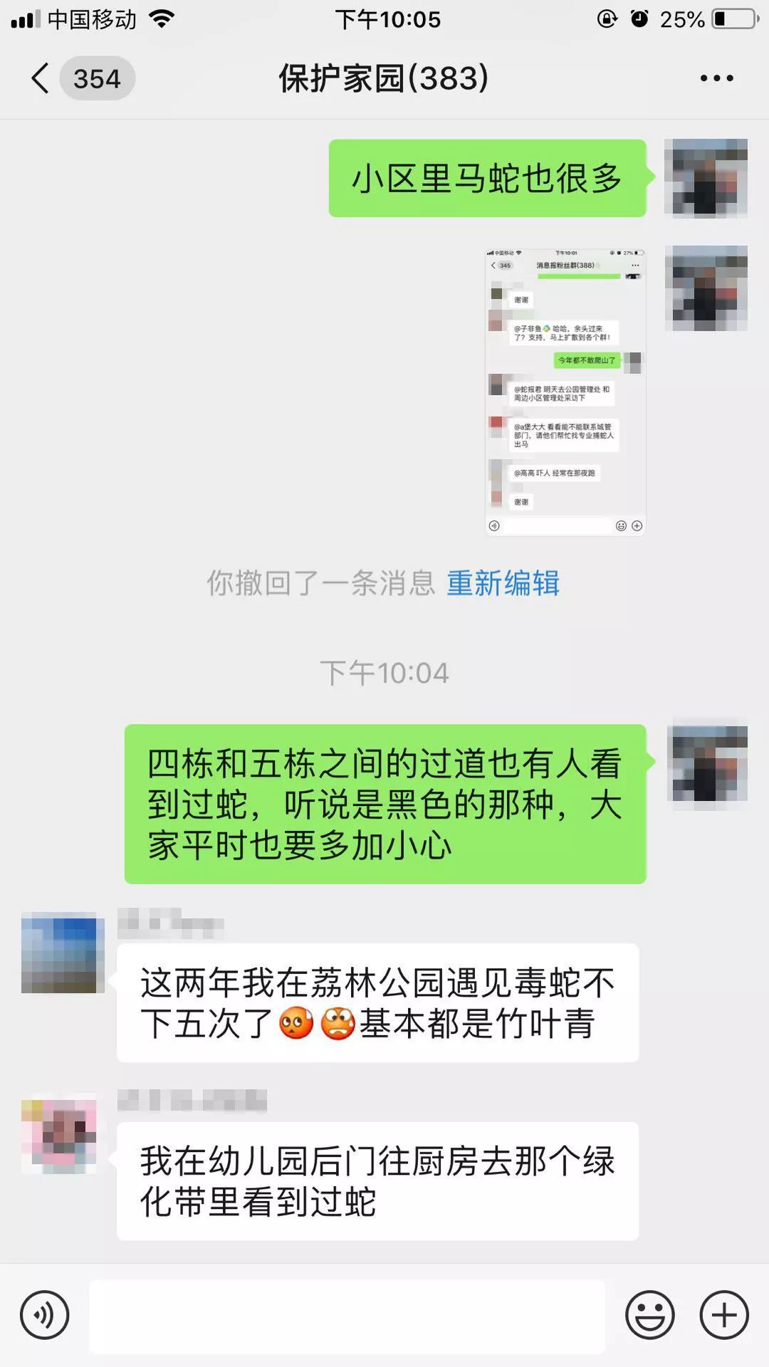 ▲消息報(bào)粉絲在群里報(bào)料,荔林公園有蛇出沒(méi)。