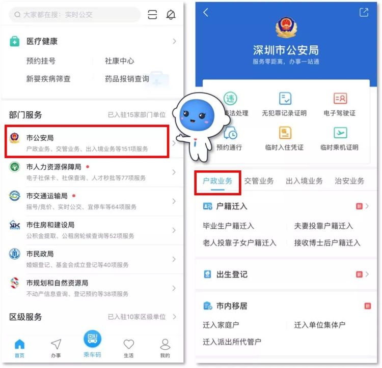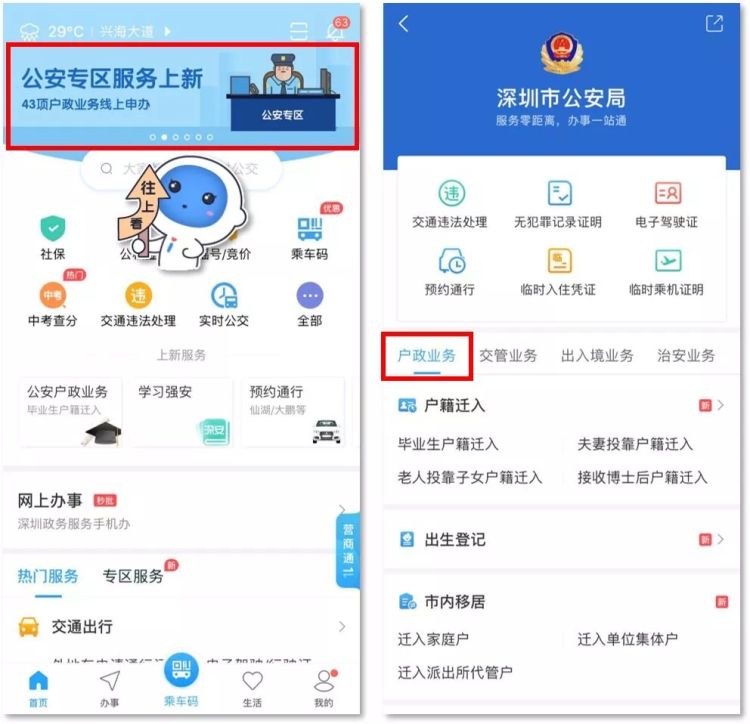 同時,市民也可從“深圳公安”微信公眾號菜單欄,進入“民生”欄目中的“戶政業(yè)務”板塊,在線辦理上述服務。