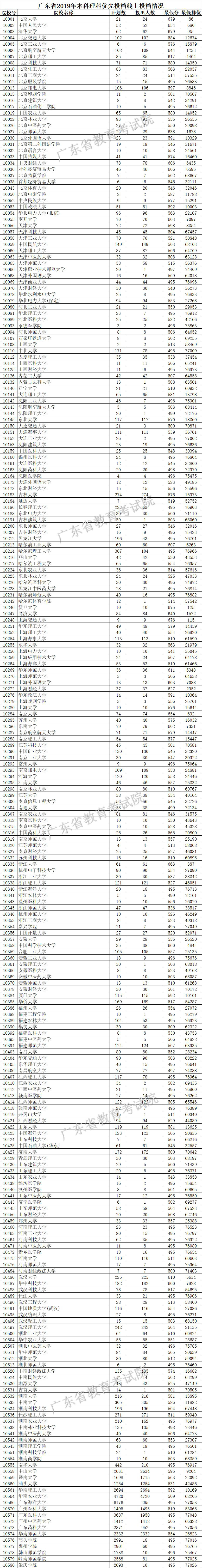 廣東省2019年本科理科優(yōu)先投檔線上投檔情況