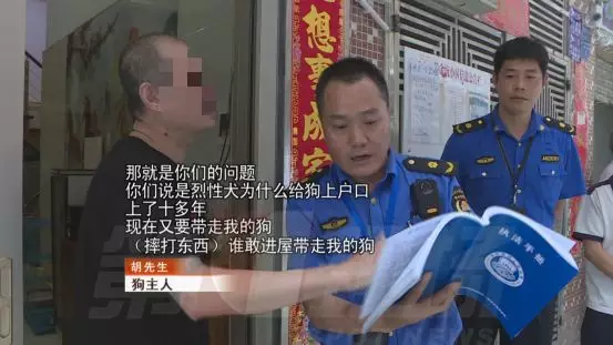 在對(duì)狗進(jìn)行暫扣,還是狗主人自行處理的問題上,雙方各不讓步。胡先生的兒子打電話過來,事情出現(xiàn)了轉(zhuǎn)機(jī)。同意執(zhí)法人員把狗帶走,但胡先生必須全程陪同,觀察狗在暫扣期間是否受到了正常對(duì)待。