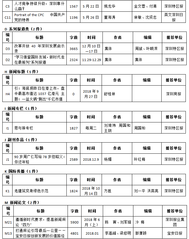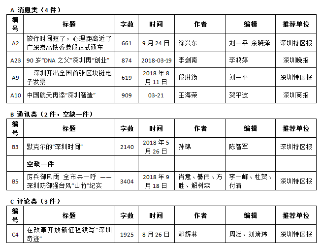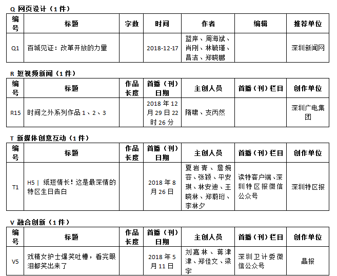 第26屆(2018年度)深圳新聞獎獲獎作品目錄