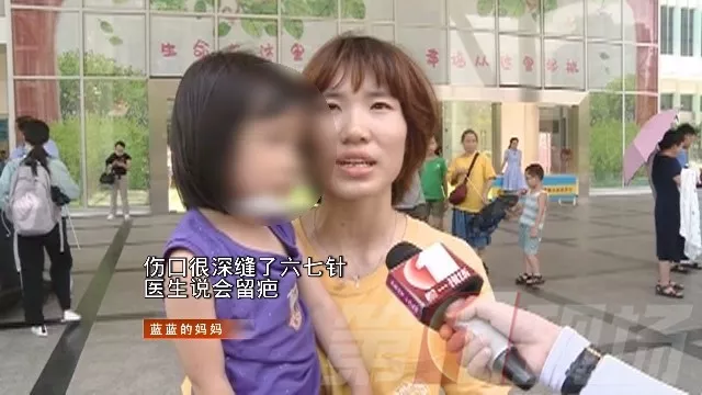 同樣遭遇意外的,還有三歲半的小女孩藍(lán)藍(lán),她的下巴被包扎了起來(lái),病例里寫(xiě)著:她的下巴里面有一條3厘米長(zhǎng),0.5厘米深的傷口。那么,藍(lán)藍(lán)又是怎么受傷的呢?